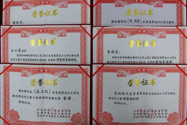 近日,由省委宣传部、团省委、省文联联合主办的首届黑龙江大学生电影节评奖结果揭晓,我校选送的微电影《马上到》获剧情类微电影金奖,这是目前为止我校微电影作品在省级比赛中获得的最高奖项。作品导演李晓东同学和指导教师王晓勇老师分获“最佳导演奖”和“优秀指导教师奖”,我校被授予“优秀组织奖”,我校另有两个作品获奖,是获奖最多的高校。