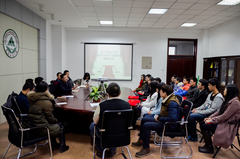 11月26日,2015年东北林业大学“北京TATA木门励学金”颁奖仪式在综合办公楼219举行。校友工作办公室主任、黑龙江省东北林业大学教育发展基金会秘书长陈立生,党委学工部部长、学生处处长王春海,学生资助管理中心主任李玉荣,材料科学与工程学院党委副书记、副院长孟新,机电工程学院党委副书记、副院长于洋及学院辅导员和14位获奖同学参加了颁奖仪式。