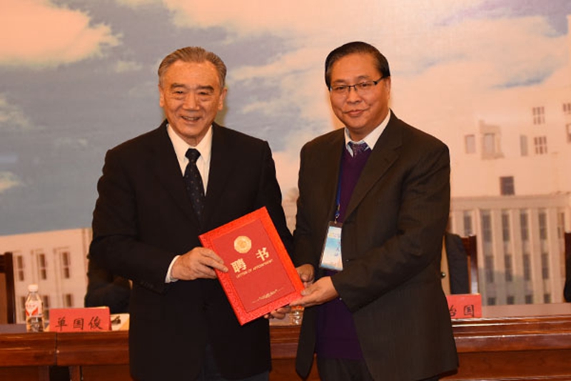校长杨传平代表学校向名誉理事长王治国颁发聘书