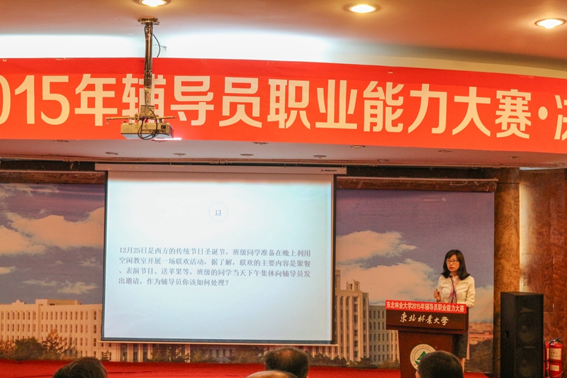 为深入推进我校辅导员队伍职业化、专业化建设,促进辅导员学习大学生思想政治教育的理论知识、基础知识、专业知识及相关学科知识,提升辅导员在组织管理、语言文字表达、教育引导、调查研究等方面的能力素养,提高辅导员的职业能力和工作水平,党委学工部在充分借鉴国家和黑龙江省辅导员职业能力大赛赛程与内容的基础上,成功举办了东北林业大学2015年辅导员职业能力大赛。