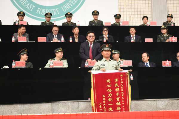 学校党委书记张志坤代表学校向65447部队赠送锦旗,表达学校对承训部队的真情赞誉;校长、党委副书记、学生军训团团长李斌宣读了《关于表彰2017级学生军训先进集体、先进个人及优秀教官的决定》,大会对获得军训先进集体、先进个人及优秀教官的代表颁奖;军训先进个人代表、来自林学院的王立轩同学代表全体参训学生发言;承训单位65447部队教导员汤标少校代表全体承训官兵发言,他对本次军训的圆满成功表示祝贺,也肯定了同学们吃苦精神强、团结互助好的优良表现,希望同学们把这次军训成果转化为努力学习、刻苦钻研的精神动力,努力把自己培养成为一名德智体美全面发展的高素质应用型人才。