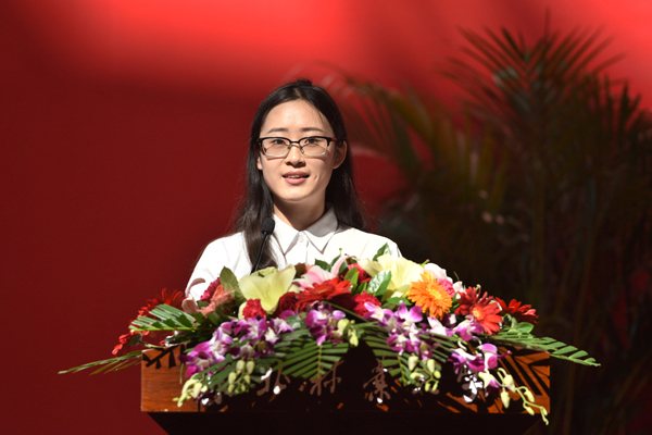 校学生会副主席、文法学院2014级社会工作专业刘津彤代表在校生发言