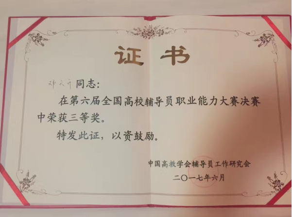 我校辅导员获第六届全国高校辅导员职业能力大赛三等奖