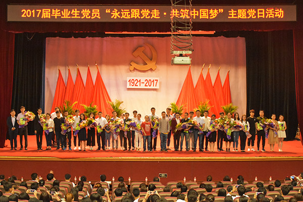 6月22日下午,2017届毕业生党员“永远跟党走 共筑中国梦”主题党日活动在我校科学会堂隆重举行。学校党委副书记陈文慧出席活动,党委组织部、学工部、研工部、校团委的相关负责同志以及各学院党委副书记、毕业生辅导员和全体2017届毕业生党员共计千余人参加了主题党日活动。活动由党委学工部部长、武装部部长、学生处处长王春海主持。