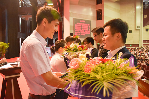 党委副书记陈文慧代表学校党委对毕业生党员提出了3点希望:一是希望同学们始终牢记党员身份,永远跟党走,希望同学们在走出校园之后,能进一步发挥党员的表率和示范作用,用脚踏实地的行动书写无怨无悔的人生。二是希望同学们能够发扬母校的优良传统,不忘母校情。她温情地表示,母校会时刻关心大家的成长和发展,做同学们的坚强后盾。三是希望同学们勇于实现个人梦想,共筑中国梦。陈文慧副书记鼓励大家要把个人的职业理想与国家、民族的前途和命运紧紧地联系在一起,将“个人梦”与“中国梦”紧密结合起来,挥洒青春,奉献社会,筑就梦想,报效祖国。