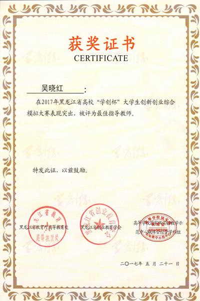 近日,2017黑龙江省“学创杯”大学生创新创业综合模拟大赛竞赛结果在黑龙江大学揭晓,我校选送的三支队伍均获奖。其中交通学院交通工程专业组(赵朔、黄能稳、吕子依)荣获一等奖一项,经济管理学院工商管理专业组(侯杰、汪志晟、黄磊;陈泽坤、焦艺波、吕淼)荣获三等奖两项,项目指导教师吴晓红、尚航标获得十佳指导教师奖。