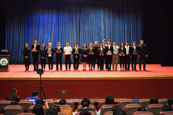 分享会上,还举行了隆重的颁奖仪式,对2016年获评优良学风标兵班、三好学生标兵的先进集体和个人代表进行了表彰,获奖集体和个人的辅导员老师为他们颁奖,并合影留念。分享会最后,6位2016级学生为6位发言的毕业生赠送纪念证书,感谢他们的分享,并祝福所有2017届毕业生前程似锦。(文:侯利军、宁佳;图:时邵辉、吴烨乔)