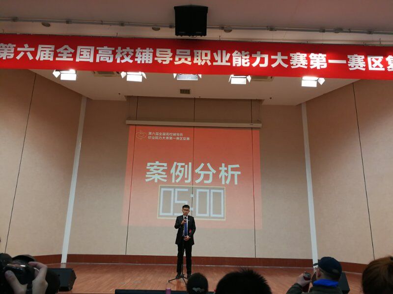 本次在大连理工大学举行的第一赛区复赛共来自黑龙江省、辽宁省、吉林省、天津市、内蒙古自治区五省(区)的50名优秀辅导员参加。邓天开老师以省赛第七名的成绩代表黑龙江省参加本次复赛。大赛分两个阶段进行,采取阶段定额淘汰制。第一阶段为主题班会评比、笔试、案例分析三个项目,邓天开老师发挥平稳,以第12名进入第二阶段决赛。第二阶段为主题(即兴)演讲和谈心谈话两个项目,邓天开老师在决赛的主题(即兴)演讲环节中大胆选择了即兴演讲,围绕“坚定信念,放飞理想”这一主题,结合自身工作中的典型故事自信发挥,拿到全场最高分。在接下来的谈心谈话环节中,针对男生因为恋爱问题产生的心理问题,邓天开老师循循善诱,摆事实、讲道理、谈感情,以出色的谈话再次拿到本环节第一名。最终综合两个阶段的成绩,邓天开老师以总成绩第三名获得一等奖。