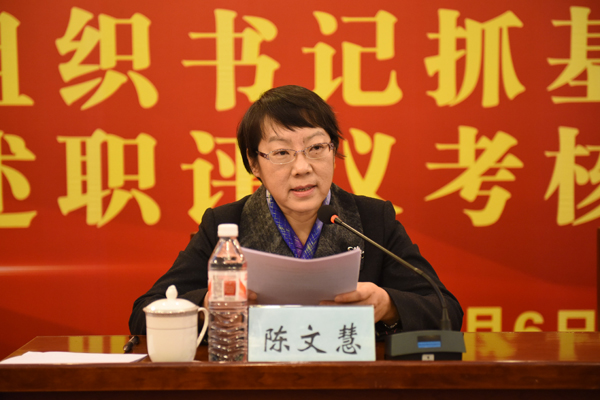 党委副书记、纪委书记陈文慧在总结讲话中指出,本次二级党组织书记抓基层党建述职评议考核工作,既是对我校二级党组织书记抓党建工作情况的一次集中展示,也是对我校基层党组织建设工作的一次实际检验,同时还是各二级党组织之间一次很好的相互学习、相互交流的好机会。她希望学校各基层党组织和全体党务工作者,要以本次党建述职评议考核为契机,认真学习、领会落实吴书记的讲话精神,切实履行好党的建设工作和全面从严治党的主体责任,不断提高党建工作水平,以抓好党建工作的实际成效,推动我校教育事业的全面发展。(文:林宣/图:王乙)