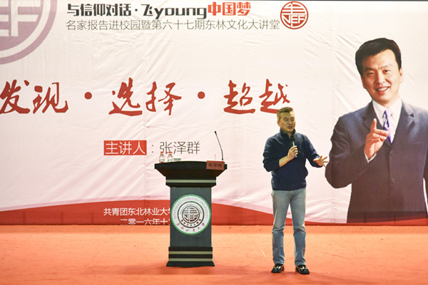 张泽群先生一直以来对价值观的树立和弘扬以及青年学生的发展成长比较关注。从去年起,他给自己制定了“十年百所大学计划”——从2015年起,每年走进十所大学举办名为“发现•选择•超越”的讲座,一直坚持十年。(乔恩杰)