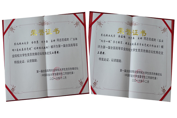 12月3日-4日,首届全国高等农业院校大学生党员先锋论坛在中国农业大学举办。由材料科学与工程学院刘子英老师指导,全凯慧同学撰写的《“互联网+高校基层党建”创新模式探析》、柴盛楠同学撰写的《落实“两学一做”学习教育,提高高校基层学生党建工作活力》分别荣获二等奖、三等奖。全凯慧同学在大会做主题发言。