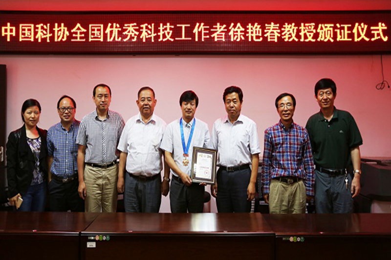 中国野生动物保护协会组织处处长尹峰宣读了《中国科协关于表彰第六届全国优秀科技工作者的决定》,赵胜利副秘书长代表中国科协为徐艳春教授颁发了全国优秀科技工作者证书和奖章。