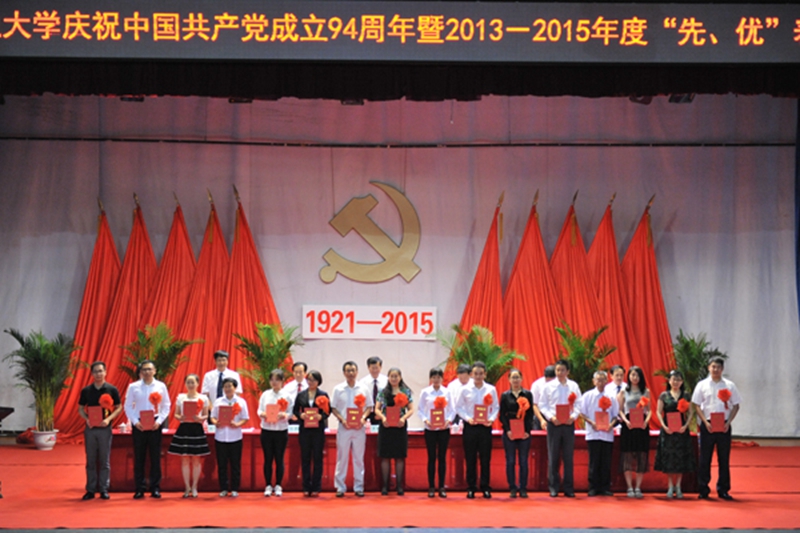 7月1日下午,学校在科学会堂召开庆祝中国共产党成立94周年暨2013—2015年度“先、优”表彰大会。在家的学校领导,党委委员、全校师生党员代表和全体受表彰同志参加大会。学校离退休老领导,各民主党派主要负责同志和无党派人士代表应邀列席了大会。会议由党委副书记胡万义主持。