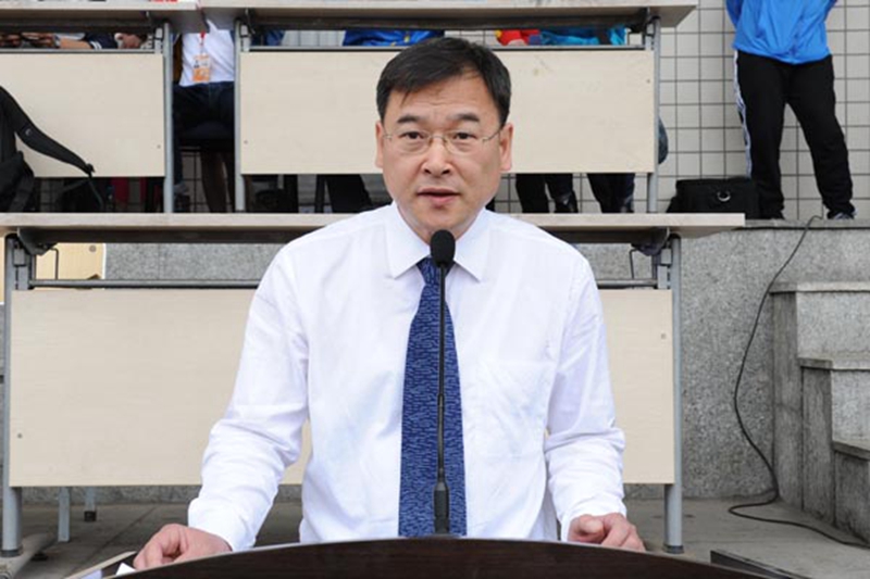 党委书记吴国春宣布东北林业大学第四十八届田径暨阳光体育运动会正式开始。