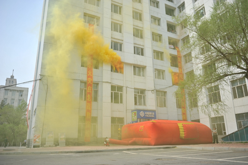 12:30,伴随着副校长李顺龙“东北林业大学春季消防演练现在开始”的一声令下,滚滚浓烟从学生公寓5号楼3楼一寝室窗口迅速向外蔓延,空气中弥漫着刺鼻的浓烟味。12:31,学生公寓5号楼门卫、部分学生发现火情,马上拨打保卫处及火警电话119,请求救援;并迅速切断楼内电源,启动应急电路,打开疏散通道。12:32,楼内发出疏散警报,部分学生在楼内用灭火器、铺设水龙带等进行初起火灾扑救。学生开始从安全通道,按照预先设计的疏散路线迅速有序撤离。12:35,香坊消防大队动力中队赶到现场,进行灭火救援作战,用气垫、云梯、缓降绳等设备援救仍被困于楼内的2名学生。