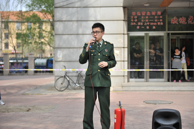 在5·12防灾减灾日到来之前,学校开展了火灾应急疏散演练,提醒师生关注消防安全,学习应急避险能力。4月29日中午,副校长李顺龙,保卫处处长丁胜利、后勤服务总公司总经理孙彦臣、学生处处长王春海与现场百余名师生观摩了演练。