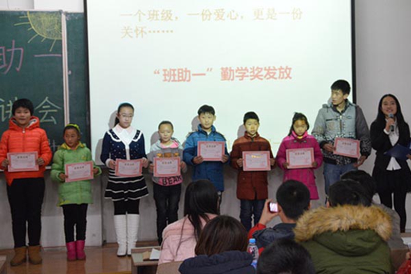 2014年我校“班助一”项目也取得了长足发展,志愿者们认真完成走访贫困儿童、举办宣讲会、开展结对仪式等每一环节,共有54个爱心班级、7个爱心社团、1个爱心个人参与项目,帮助了62名农民工子女,筹集爱心款37860元。机电工程学院2013级工业设计1班汇集全班的爱心为兴南中学二年级吴洪禹同学筹集了800元的爱心款,并定期到他家里回访,同时帮他解决学业上的一些问题。班级代表刘鑫说:“‘班助一'活动不仅使我们班级更加的团结,而且在与孩子的交流过程中,也使我们对生活有了更加深刻的理解,坚定了我们努力学习的信念。”受到园林学院2014级风景园林3班帮助的孩子高洋洋说出了她的心里话:“感谢爱心班级的大哥哥和大姐姐帮助,有了这些钱,我可以置办新的学习用品,还可以买一些课外读物,让我的学习生活更加丰富多彩,更重要的是为家里减轻了一些负担,长大以后我也向他们学习,竭尽自己的所能去帮助那些需要帮助的人。”