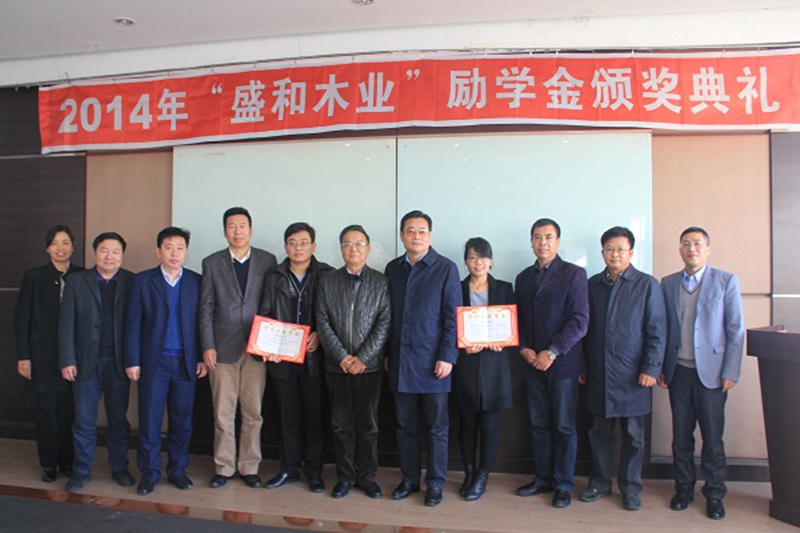 徐州盛和木业有限公司董事长王福华先生和副总经理魏鹏先生分别为获得2014级“盛和木业”励学金的同学现场颁发荣誉证书和现金奖励,博士研究生每人2万元、硕士研究生每人1万元。