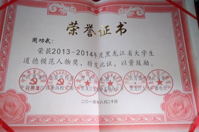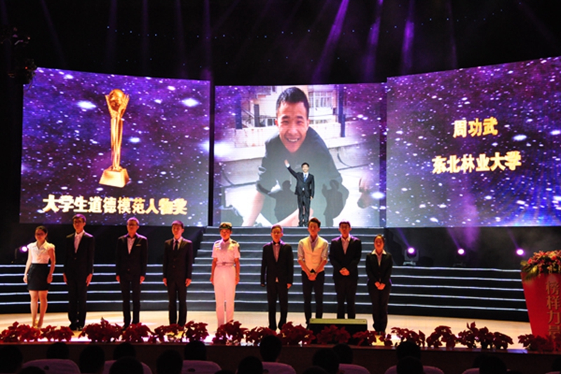 黑龙江省大学生道德模范人物周功武上台领奖