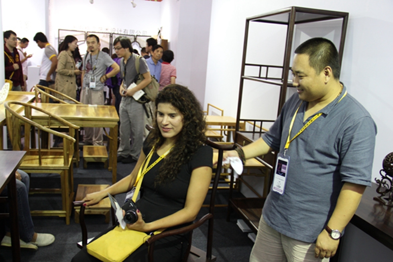 中国家具协会理事长朱长岭在参加完开展剪彩仪式后,第一时间来到牛晓霆作品所在的展位。朱长岭表示,目前中国是家具的第一制造大国,重视原创设计、提高创新能力是提升中国家具企业国际竞争力的重要保障。明式家具作为具有中国民族风的传统家具,已经受到越来越多人的关注。但是目前市场上很多明式家具的制造并没有抓住明式家具线条美的本质,多是形式的模仿,没有韵味,缺乏设计感。牛晓霆的作品不仅工艺考究、选材精良,而且造型优美,抓住了明式家具的神韵,体现了明式家具的生命美,这也是明式家具的发展方向。他鼓励牛晓霆要传承中国优良传统,继续做好高端明式家具设计,让富含中华民族传统文化的家具走向更为广阔的国际市场。