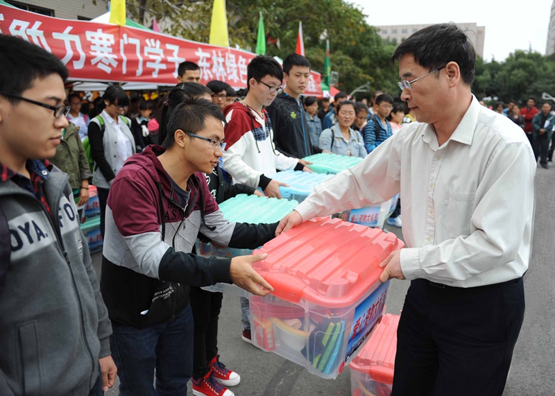 杨校长首先代表学校欢迎各位新同学的到来,感谢大家在全国2400多所高校中选择了东北林业大学。预报到显示,今年我校有552名家庭经济困难学生需要通过绿色通道入学。其中有一大部分是来自林区、农村等经济条件困难地区的学生。杨校长深情地说,现在有健全的国家资助政策体系,学校及社会各界也拿出资金对家庭经济困难学生进行资助,很多东林校友也为母校捐资助学。相信不论家庭经济状况如何,只要来到东林这个新家,学校就不会让任何一名学生因为家庭经济困难而掉队。