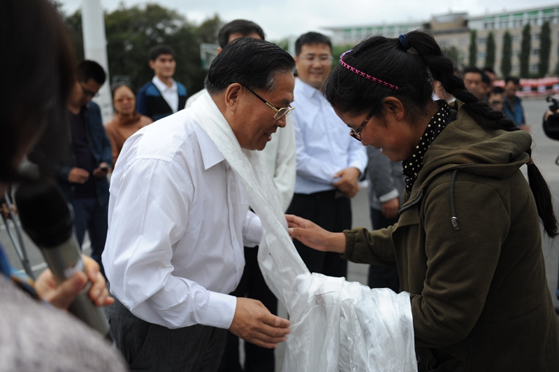 在现场,来自西藏日喀则地区的米玛还向杨传平校长、蔺海波副书记敬献了哈达。虽然她汉语说得还不太流畅,但她表示,东林这个家庭很温暖,让她对顺利完成学业充满了信心。