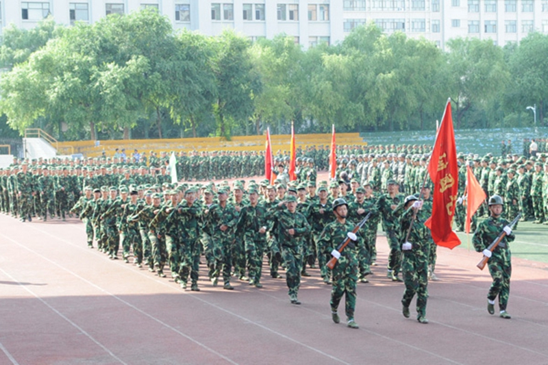 伴着激昂的中国人民解放军进行曲,4600多名军训学员迈着矫健的步伐陆续经过主席台,接受学校领导和部队领导的检阅,方队军容严整,步伐整齐,斗志昂扬,充分展现了我校2013级学生良好的精神面貌。饱满的热情和高昂的斗志充分展示了军训成果。