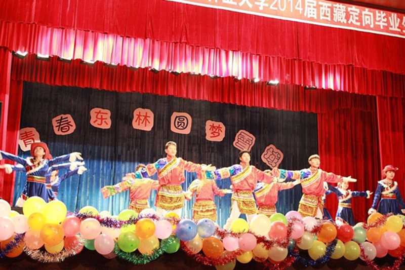 6月7日晚,以“青春东林,圆梦雪域”为主题的欢送2014届东北林业大学西藏定向毕业生晚会在学校小礼堂上演。党委学生工作部副部长、学生处副处长王志新,文法学院党委副书记、副院长李伟杰,园林学院党委副书记、副院长张艳波,土木工程学院党委副书记、副院长王晓光来到了晚会现场,与到场的老师和同学们一起,欣赏了由学校全体西藏定向生同学真情演绎的精彩演出。