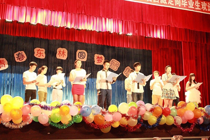 在舞蹈《阳光康巴》热情奔放、雄壮有力的舞姿中,本场晚会的帷幕徐徐拉开。之后,同学们陆续表演了具有浓厚雪域风情的舞蹈《桥墩》、《格桑拉》、《踢踏舞》和由我校藏族学生多吉江村演唱的民族歌曲《向往神鹰》,优美的舞姿和高亢的歌声,牵引着同学们的思绪,飞越千山万水,来到美丽的雪域高原,感受着西藏独特的风土人情和文化底蕴。最后一个登台的节目——大朗诵《毕业之歌》,将整场晚会的气氛推向了最高潮。同学们以时间为轴,将自己四年东林生活的点点滴滴,用最朴实、最平凡的语言娓娓道来。虽然都是学习生活的琐事,但是每一件都饱含着学子们对母校深深的眷恋与不舍。“母校,我们爱你!东林,我们爱你!”在学子们一声声饱含真情的呼喊中,本场晚会圆满的落下了帷幕。