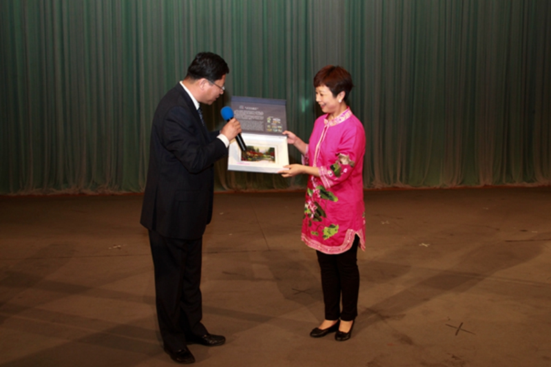 演出正式开始前,我校党委副书记、副校长孙正林代表学校致欢迎辞,并与国家京剧院党委书记徐畅互换礼物。(侯利军)