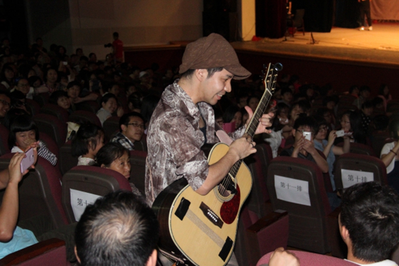 最后登台的丁泽强老师同样深受大家的喜欢,他为东林师生带来了热情的民谣吉他弹唱,一首《爱的代价》,引起全场大合唱。活动的最后,三位老师共同演奏了央视《动物世界》主题曲——《跳动的心》,为本次吉他独奏会画上了圆满的句号。