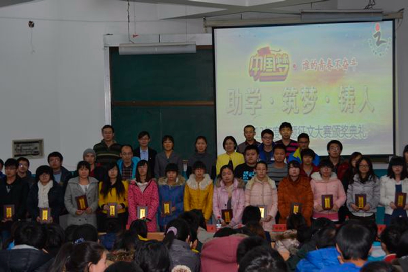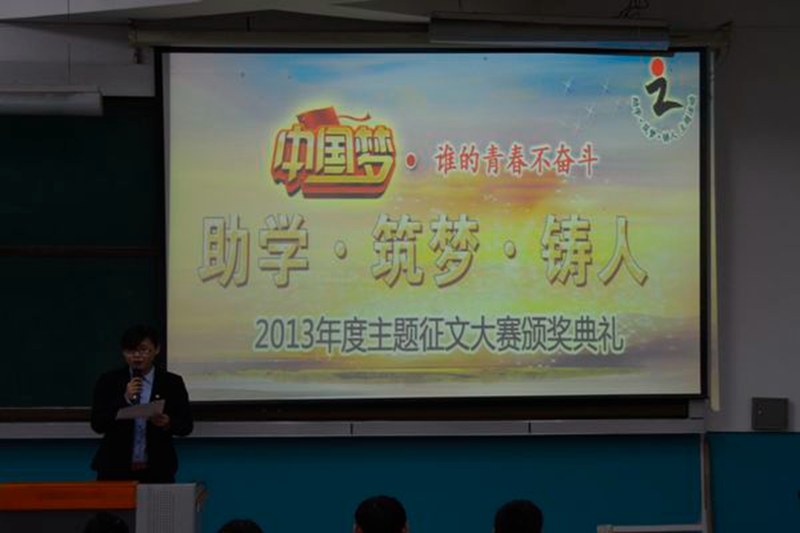 近日,2013年度“助学·筑梦·铸人”主题征文大赛颁奖仪式在锦绣楼T301室如期举行,学生资助管理中心主任、学工部副部长、学生处副处长李玉荣,征文大赛获奖代表以及近200名学生参加了本次活动。活动由学生资助管理中心梁江主持。