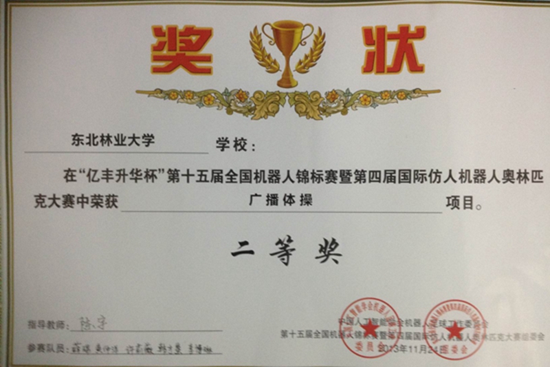 最后,向给予本次比赛全力支持的我校教务处领导和教学实践科表示衷心的感谢,同时向信息学院院领导、计算机系领导及给予东北林业大学仿人机器人竞赛团队帮助的所有师生员工表示感谢。(陈宇)