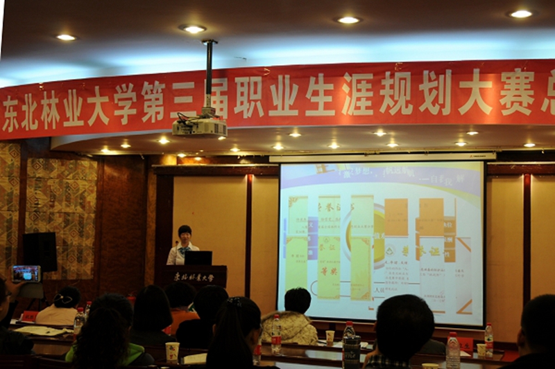 2013年11月15日,由毕业生就业指导中心主办、经济管理学院承办的东北林业大学第三届职业生涯规划大赛总决赛在动资楼331室拉开了序幕。大赛邀请了哈尔滨工业大学招生就业指导处邢朝霞、黑龙江大学招生就业指导处赵丽明、东北林业大学经济管理学院党委书记高玉娟、东北林业大学毕业生就业指导中心主任陈立生以及东北林业大学生命科学学院党委副书记、副院长祝胜男担任本次大赛的评委。