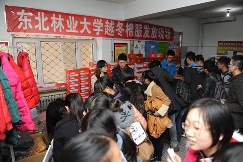 当日,在越冬棉服发放现场,学生们有序领取冬衣。来自河南商丘市的潘新宇是东北林业大学工程技术学院的大一新生。当天室外温度只有0度左右,但他只穿了一件T恤,外搭了一件薄夹克。他说:“根本没想到哈尔滨会这么冷,所以并没有留出买冬衣的钱。没想到学校想的这么周到,帮我们把冬衣都准备好了。这下家里不用担心我冻着了。”