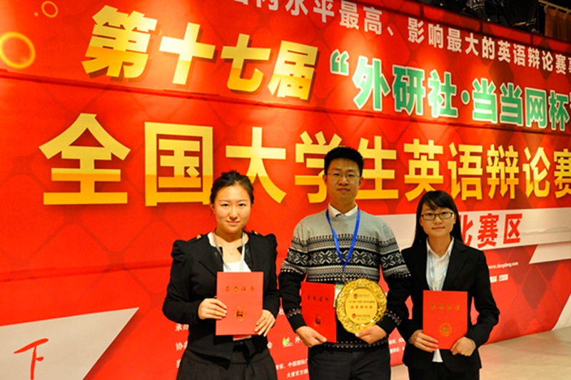 10月13日,第十七届“外研社•当当网杯”全国大学生英语辩论赛(东北赛区)在辽宁大学落下帷幕。经过两天激烈角逐,我校2011级园林学院郑洋、林学院张玉洲在外国语学院教师王楠的带领下取得三等奖。