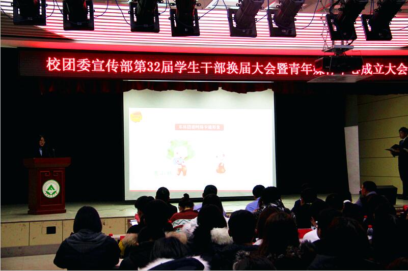 11月25日下午1时30分,校团委青年媒体中心成立大会于颐丰园四楼如期举行,校团委书记艾曦锋,团委副书记李晶才、付书朋、王宏光、杨婉婷、边佳,各校级组织负责人,各学院团委副书记以及校团委宣传部第31届学生干部参加了本次成立大会。