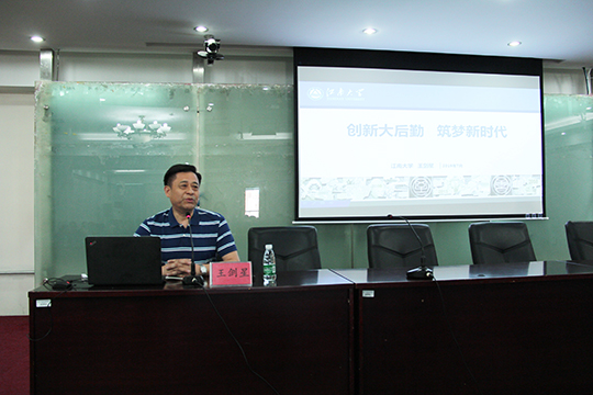 2019年7月4日,为贯彻落实全国教育大会精神,全面提升后勤服务质量,助力学校“双一流”建设,学校邀请江南大学原后勤保障系统党委书记王剑星来校作题为“创新大后勤 筑梦新时代”后勤系统专项培训讲座。后勤保障部、党委保卫处、国有资产管理处、校园建设处、校医院、服务公司全体党员干部参加了讲座。后勤保障部党总支书记尹承增主持讲座。