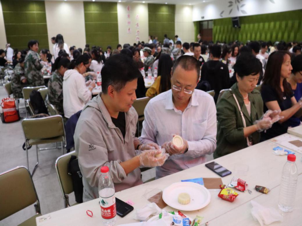 为了让新同学们更好地感受到中秋佳节的气氛,现场进行了制作月饼活动。在场的每位师生都积极参与制作,和面、称重、擀皮、包馅、定型,品尝亲手制作的“心型”、“花型” 等各式月饼,玲珑心意,圆月林华,月饼承载了园林师生浓浓的情谊。师生还互换纪念礼物,一张张倾心画作的东林十景明信片寄托着老师们对2019级新同学的满心期许,一页页用心描撰的园林胜景明信片表达着2019级新同学对老师们的深深敬意。整场见面会在师生欢声笑语中落下了帷幕。