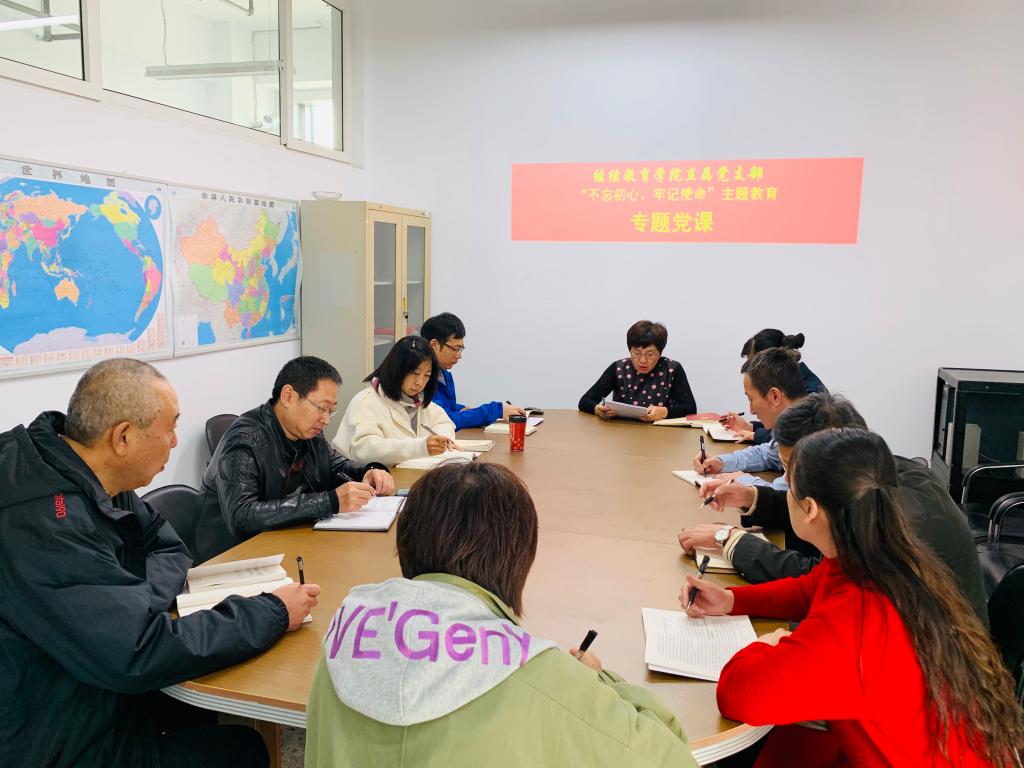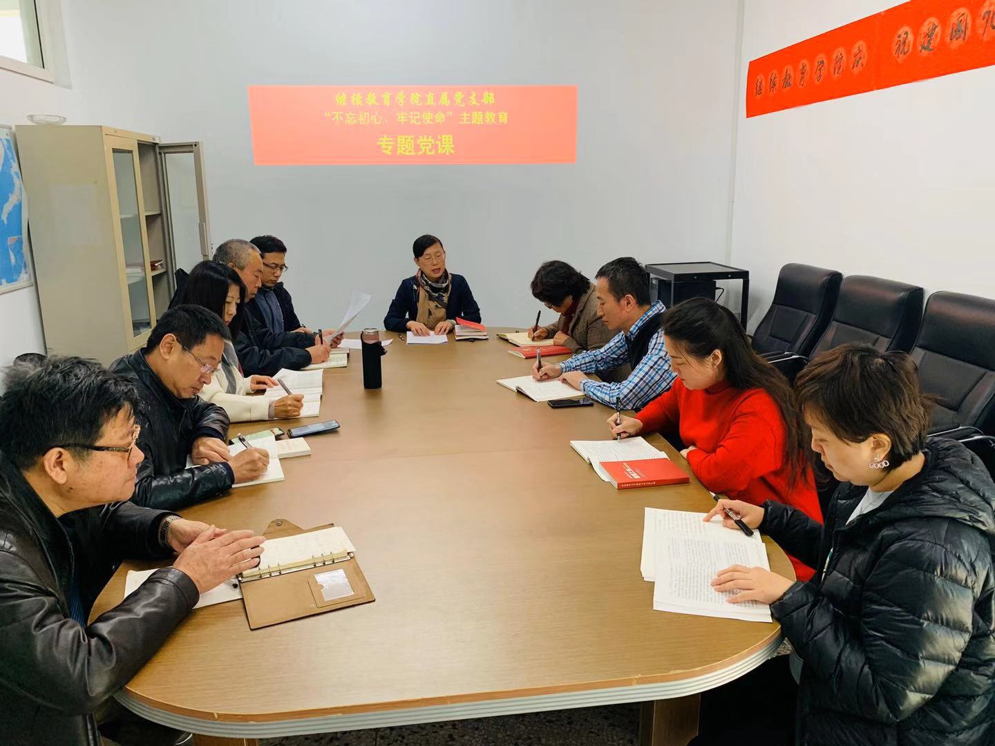 自学校开展“不忘初心,牢记使命”主题教育以来,继续教育学院直属党支部领导班子在不断提高自身政治素养,吸收理论指导实践的同时,更加注重对党员的学习教育。班子成员精心设计党课内容,从理论到实践,并紧紧围绕继续教育工作实际,用心备课,党支部书记马杰夫,副院长李雷鸿、姜中珠分别在10月9日、17日、21日先后为学院全体党员讲了“不忘初心、牢记使命”主题教育专题党课。