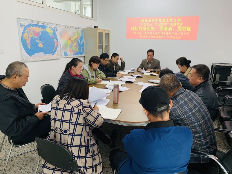 继续教育学院院长兼党支部书记马杰夫以“如何做到‘守初心、担使命、找差距、抓落实’”为题,分析了学院继续教育面临的严峻形势,要求全体职工必须提高思想认识,增强自身素质,提高工作效率,勇于担当,努力开拓,牢记作为一名继续教育工作者的使命,使我校继续教育事业迈上新的台阶,为我校推进“双一流”建设贡献力量。