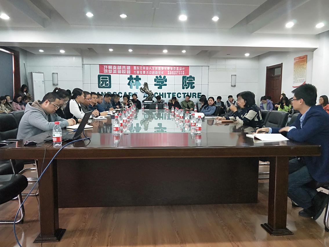 为深入开展“不忘初心、牢记使命”主题教育,10月18日下午,园林学院风景园林教工党支部与校园建设处党支部在园林学院五楼会议室举行了支部共建活动,暨东北林业大学校园绿化整体改造设计方案征集活动启动仪式。校园建设处处长徐志成、副处长兼校园建设处党支部书记焦树仁和我院党委书记赵新勇、院长王竞红等学院班子领导,以及风景园林教工党支部与校园建设处党支部的全体党员同志参加了启动仪式,仪式由我院风景园林教工党支部书记毛靓同志主持。
