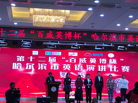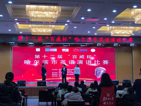 2019年12月22日,“百威英博杯”第十二届哈尔滨市英语演讲比赛决赛及颁奖仪式在黑龙江大学举行。来自黑龙江省商务英语学会、黑龙江省外语教育学术交流基地、哈尔滨开发区招商局、百威英博城市发展基金会、哈尔滨工业大学、东北林业大学、哈尔滨商业大学、哈尔滨金融学院、黑龙江省外国语学院及哈尔滨市部分中学的领导、教师与参赛选手齐聚一堂,参与并观摩决赛与颁奖环节。最终,我校2018级风景园林学院环境设计专业陈慧儒获得冠军。