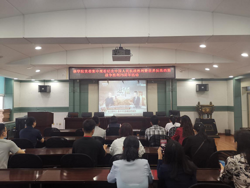 学院党委书记宋妍同志表示,抗日战争是鸦片战争以来,中国人民反侵略战争从失败到胜利的伟大转折,为中华民族的百年屈辱画上了句号,从而成为中华民族复兴的伟大开端。抗日战争作为世界反法西斯战争的东方主战场,在人类战争史上矗立起一座战略制胜的伟大丰碑。经过战争烽火考验的中国共产党,历经磨难而不衰,千锤百炼更坚强,成为领导人民救亡图存、顶天立地的伟大砥柱。
