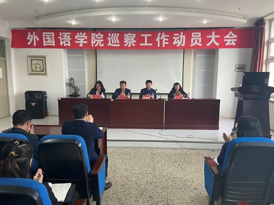 9月16日下午,我校党委第三巡察组在文博楼1109召开外国语学院巡察工作动员大会。校党委第三巡察工作组全体成员、党委组织部长、外国语学院领导班子成员及学院全体教师和学生代表参加会议。会议由外国语学院院长董辉主持。