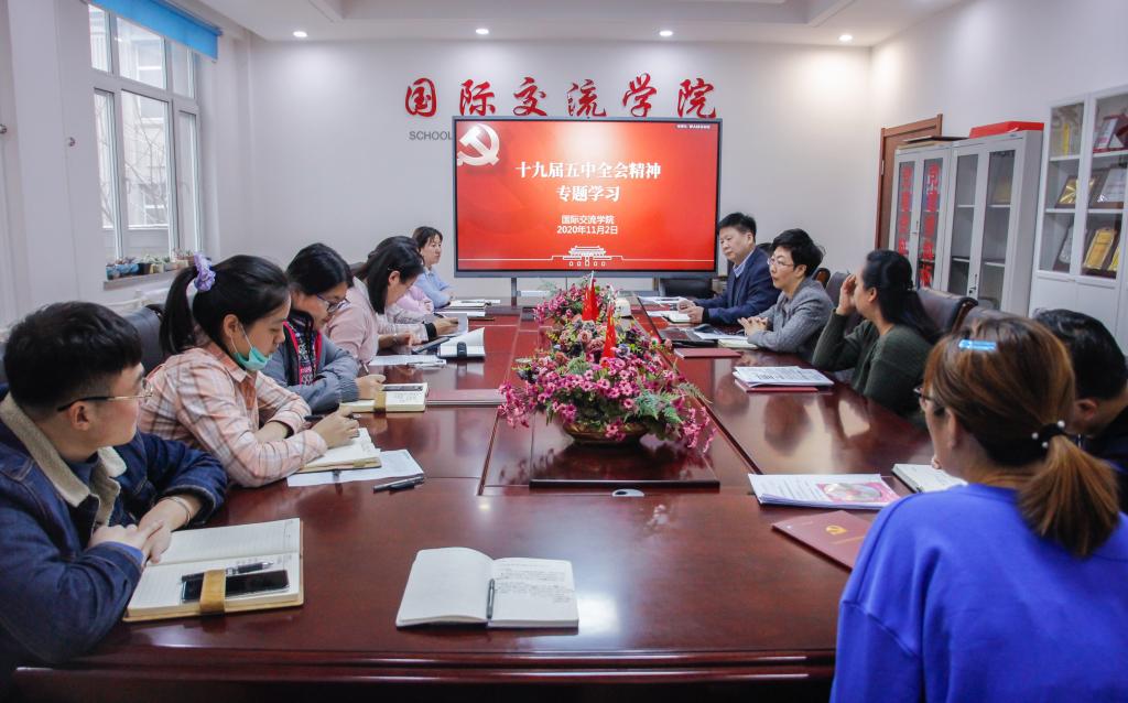 11月2日下午,国际交流学院全体教职工在学院会议室召开了“学习贯彻十九届五中全会精神,谋划学校来华留学教育工作新发展”专题会议。会议由学院直属党支部书记骆颖主持。