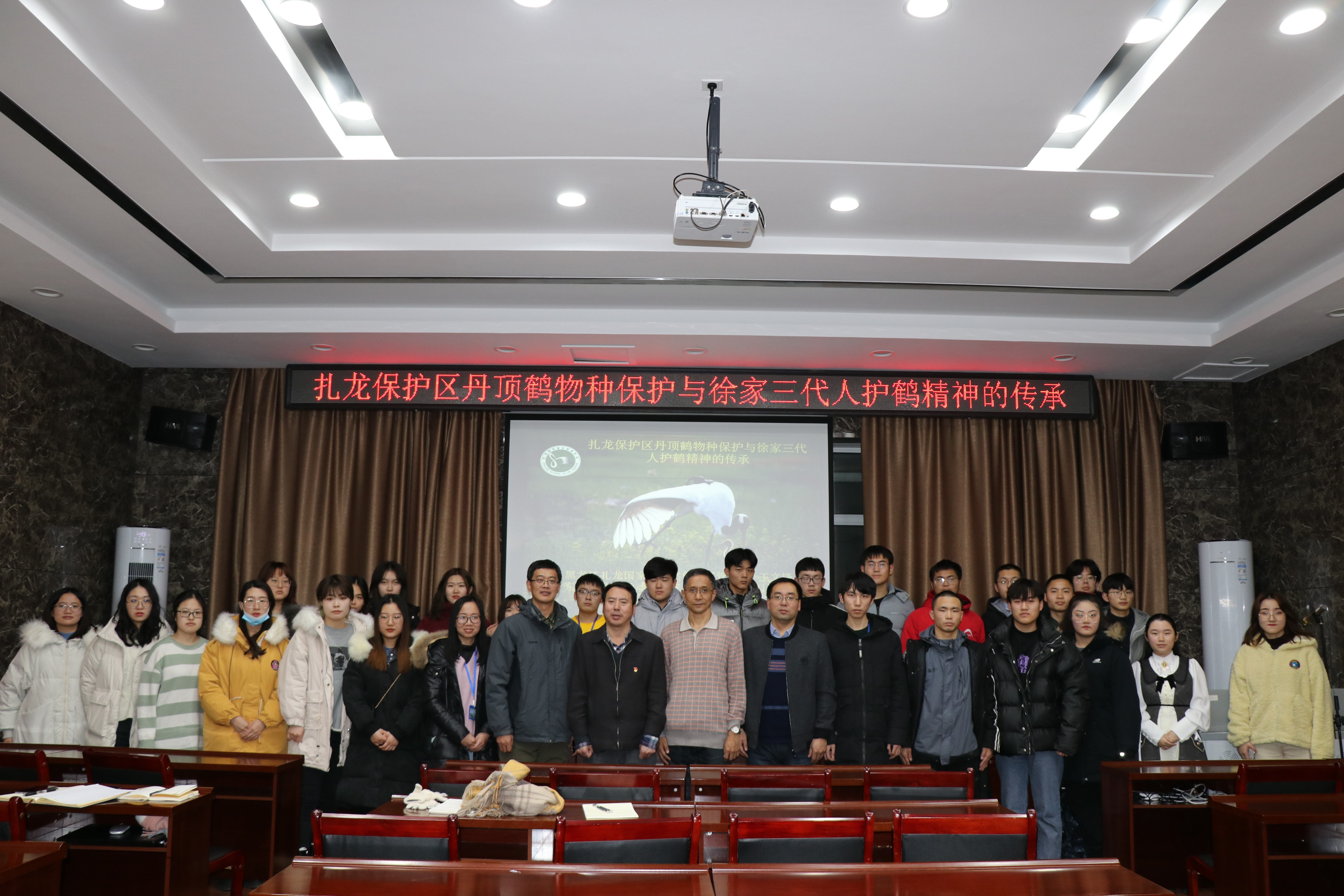 12月11日下午,以扎龙保护区丹顶鹤物种保护与“鹤魂”精神传承为主要内容的讲座在动保学院333室举行。我校校友、黑龙江扎龙国家级自然保护区管理局王文锋同志做客《建章讲堂》,为动保学子讲授关于扎龙保护区丹顶鹤的保护工作以及徐家三代人的护鹤精神传承的事迹。学院领导及2020级本科生、研究生参加活动。