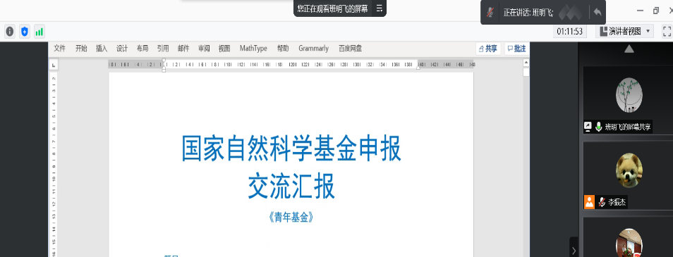 为进一步提高国家自然科学基金申报质量,浓厚学术氛围,繁荣基础研究,近日,机电工程学院利用“腾讯会议”组织召开了2021年度国家自然科学基金申报院内评审会,邀请了北京工业大学人工智能与自动化学院院长张利国,以及我校林学院李伟教授、机电工程学院郭艳玲教授等6名专家进行线上评审,把脉问诊,助力青年教师提升科研素质。学院2021年拟申报国家自然科学基金青年基金项目的8名教师参加会议,逐一阐述申报材料。会议由机电工程学院副院长朱良宽主持。