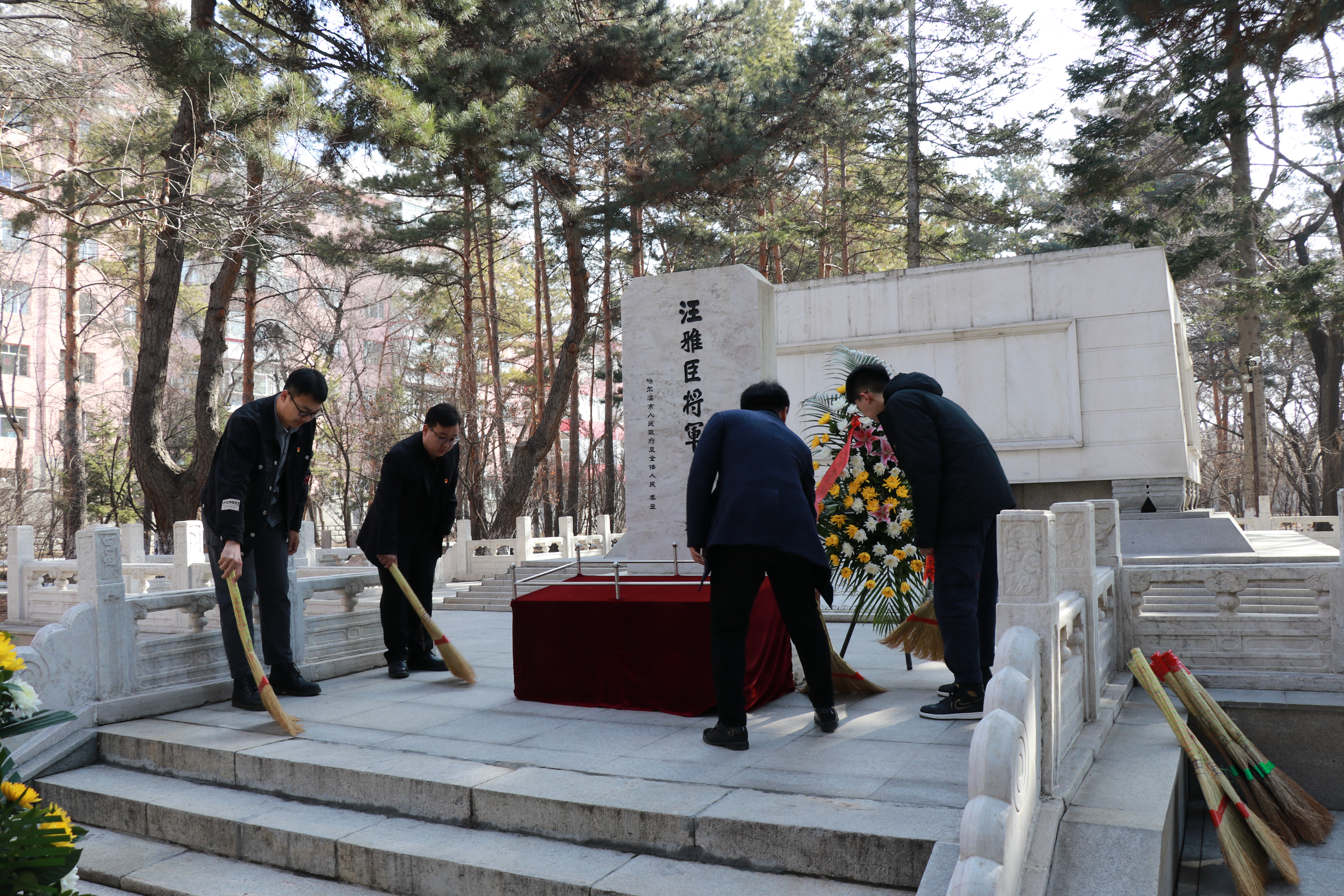 上午九时,活动正式开始。教师党员代表和学生党员代表共同为东北抗日联军第十军军长汪雅臣将军墓进行清扫并敬献花篮。场党员聆听了烈士陵园基本情况及汪雅臣将军生平事迹。全体党员面向人民英雄纪念碑沉痛默哀。学生党员代表2017级动保2班姜海霞表示,作为百年征程的传承者,广大青年应该认真学习历史、牢记革命先辈的丰功伟绩,并将学习转化为学习奋斗的内在动力,勇担时代使命,为社会主义事业建设添砖加瓦。