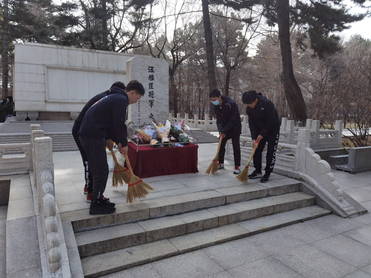 学生代表认真清扫汪雅臣将军烈士陵墓
